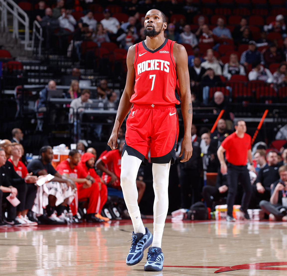 第二节火箭在防守端出现了巨大的问题,单节公牛23中14,命中率高达60.9%,火箭队这边只有19次出手他们还是过多的低级失误,杜兰特半场拿到12分8篮板,申京半场13分5助攻4篮板球队却被反超了,乌度卡暂停时的肢体语言已经非常不满,进入中场休息肯定会要求提升防守。